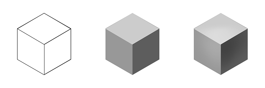 그려진 형태를 빛이라는 자연의 방식을 이용하여 사물의 기본적인 입체를 표현합니다.